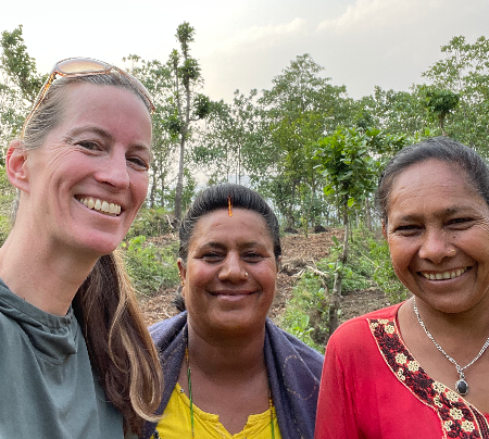Kamala (right) grows several herbs including our lemongrass and is pictured here with her helper Sita and Tea Rebellion founder Annabel. The Ginger and Tumeric roots are re-planted and harvested every 1 (Ginger) or 2 (Tumeric) years. The Nepali variety of the Tumeric is particular savory.