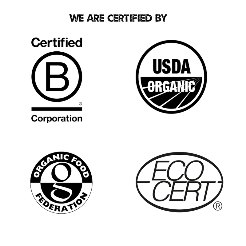 Certifications helds by Tea Rebellion incl Ecocert/COR/USDA in Canada and USA and Organic. Food Federation in the UK as well as B Corp