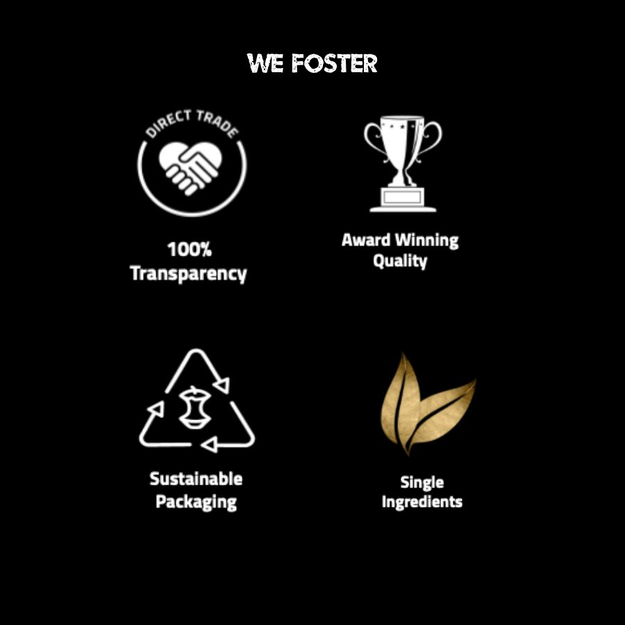 We believe in transpparency, amazing quality, sustainable packaging and using single ingredients