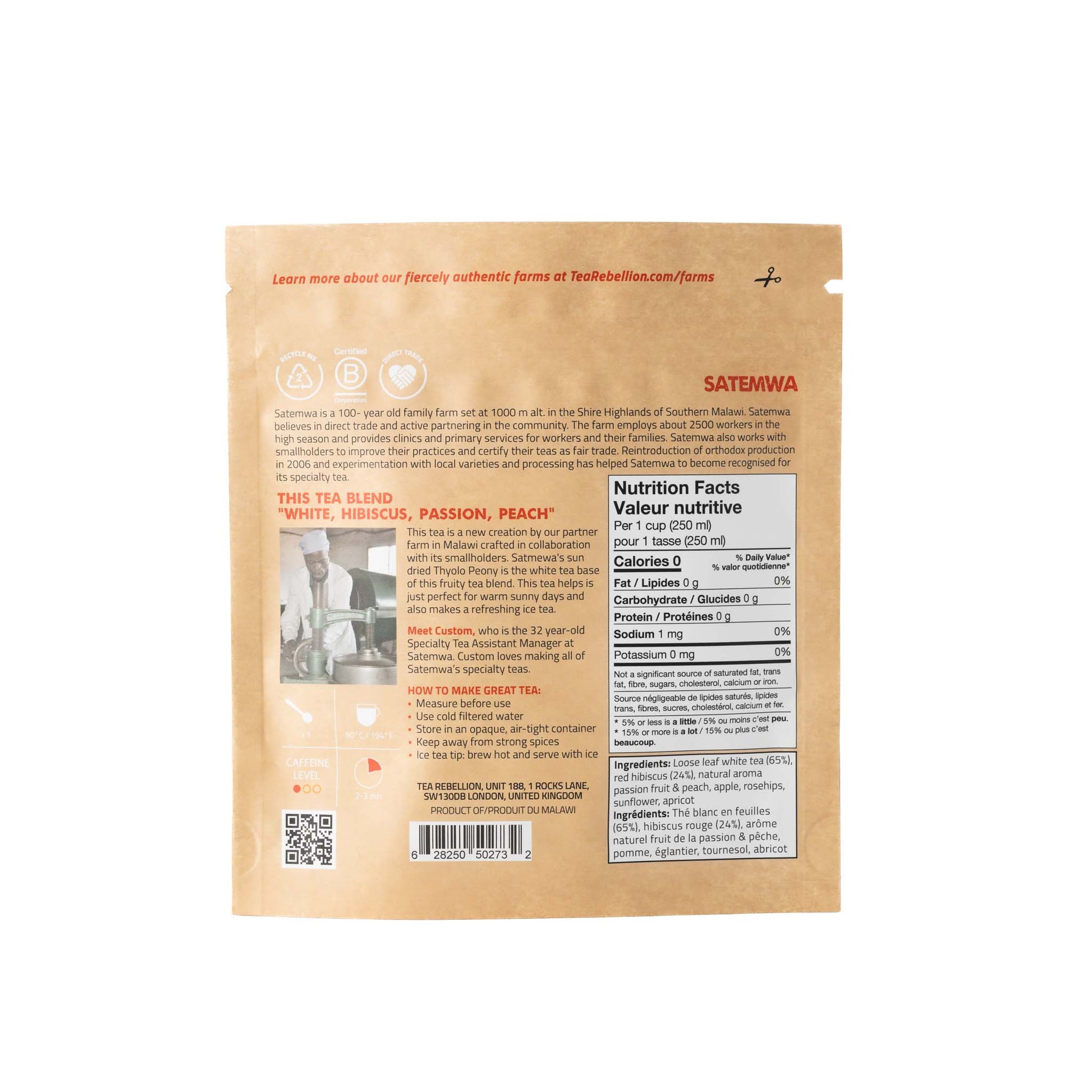 This tea is a new creation by our partner farm in Malawi. Satemwa's sun dried Thyolo Peony is the white tea base of this fruity tea blend. This teas shows the great collaboration between Satemwa and the Msuwadzi Smallholder Association. This partnership aims to diversify farmer income by helping smallholders to grow different crops. This tea is a small batch fruity alternative that is just perfect for those warm summer days. It makes for a great refreshing ice tea.