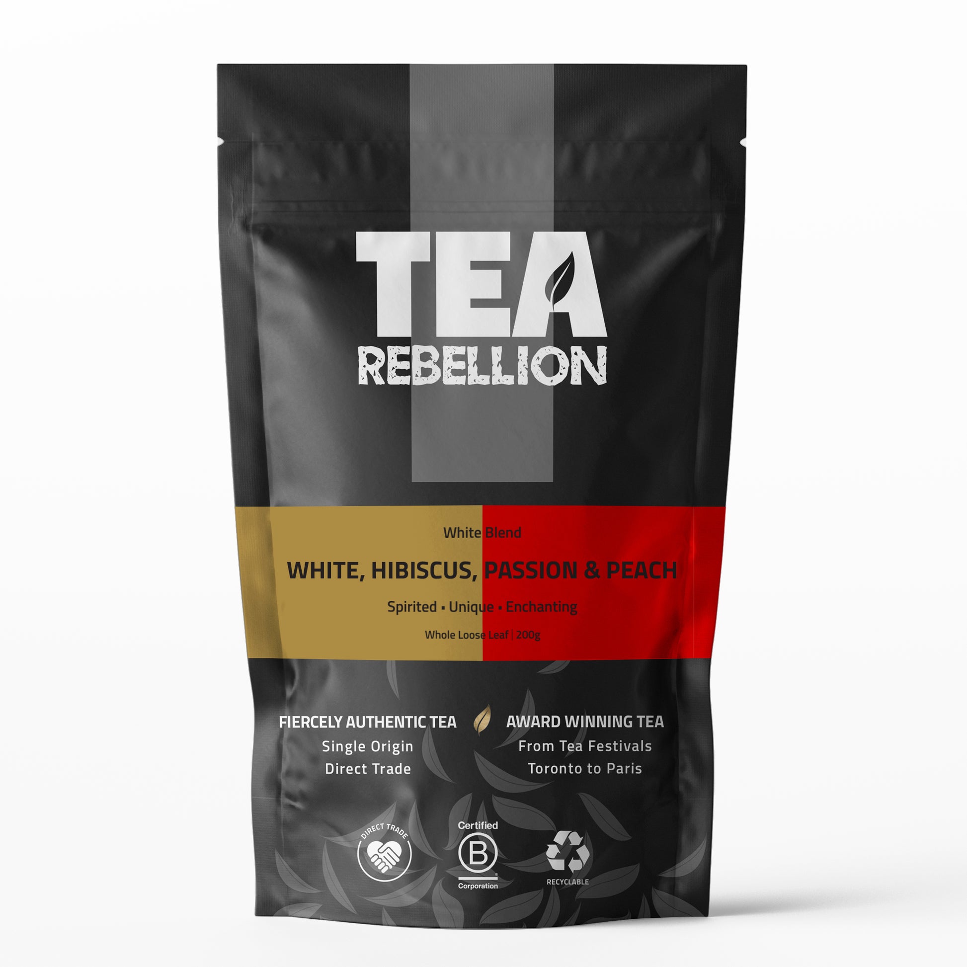 Ingredients: Loose leaf white tea (65%), red hibiscus (24%), natural aroma passion fruit & peach, apple, reship, sunflower and appricot